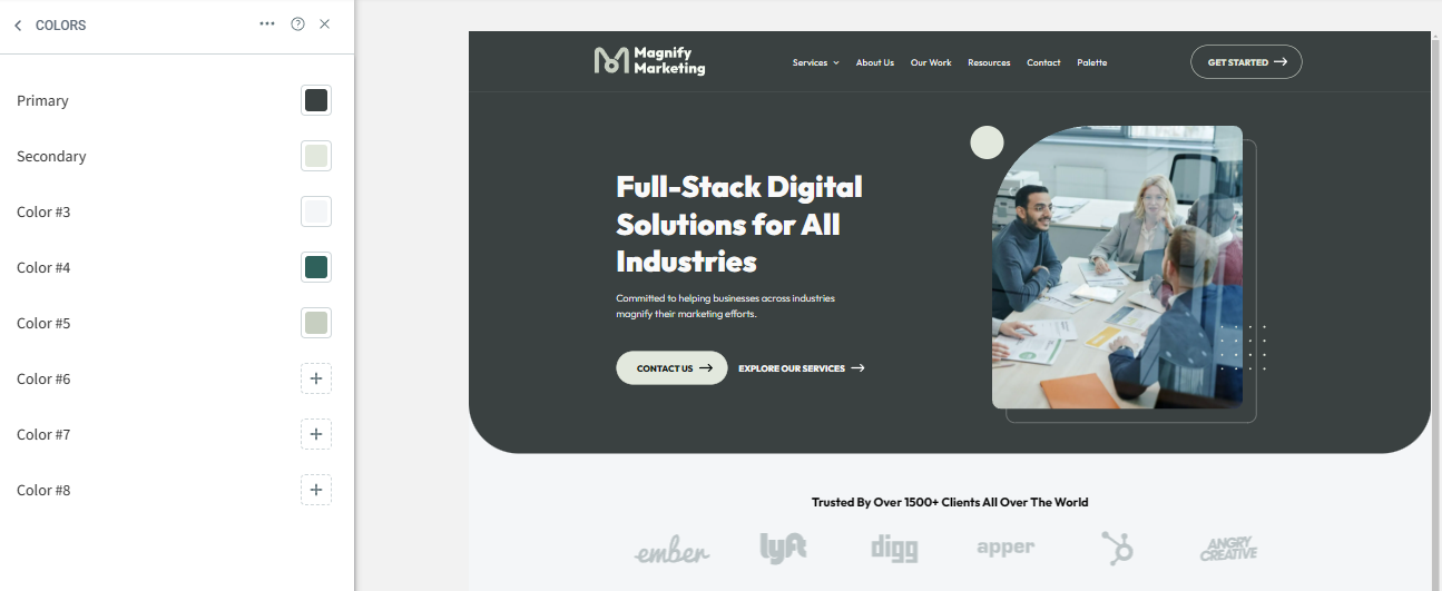 Is your business color palette different from this template? Most likely- yes! Duda has made it easy to change colors without having to select anything individually by simply changing the Site Theme colors. Check out how with the easy steps below!